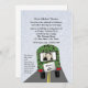 I chose the larger postcard sized one, as the font would be large for older eyes, and customised it keeping the Rail Ticket theme on the front, with venue address/date/time of party, and on the back I added another steam train and various 80 speed limit/rail signages. The trick is not to overdo it or it looks too busy. I also added at one end of the front side, a word of thanks from the birthday boy.