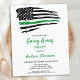 American Flag Thin Green Line Soldier Military Going Away Party Invitations. This rustic Thin Green Line American Flag party invitations are perfect for a soldiers going away party, military deployments send off, military welcome home celebration, military graduation, and military retirements. Personalise this american flag invitation with your soldiers event, name, and party details.