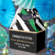 This graduation design features a military flag with black and white stripes, and a thin green line stripe as well. The gold army boots sits above the name of the graduating sergeant, captain, soldier, lieutenant or general.