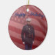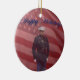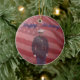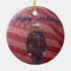Easily customise this military Happy Holiday's ornament with text for your friends, family or loved ones. A proud soldier stands erect in front of our waving American flag.
