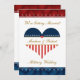 Personalised patriotic American flag heart military wedding invitation, in patriotic red, white and blue colours! Font colour is golden. You add the bride and grooms name in centre of the heart! This invite template is ready for you to customise your wedding day details in the provided template areas. If you would like to change the font or the colours of fonts, placement of text or rearrange anything simply click on 'customise' and all these options will be available to you! Please visit our store for matching patriotic items such as reception placement cards, table number cards, response cards, postage stamps, military ornaments and wedding favours, and much more.
