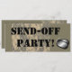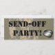 Party invitation that celebrates military pride on a camouflage pattern. Dog tags on front, customised text on the back for your own personal touch.