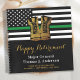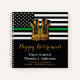 Thin Green Line Military Retirement Guest book. Celebrate years of dedicated service, your military retirement and invite friends and family to your military party with this modern Thin Green Line Flag with Gold Army Boots Military Retirement Invitation. USA American flag design in Police Flag colours, modern black green white and gold design. This military retirement invitation is also perfect for military graduation, soldier going away part, deployments and homecoming, change venue in personalisation. See our collection for matching military retirement gifts, military retirement party favours, and supplies. COPYRIGHT © 2021 Judy Burrows, Black Dog Art - All Rights Reserved. Military Thin Green Line Boots Retirement Guest Notebook