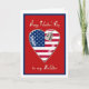 Features a red background, blue and white border, large American Flag Heart, be mine dog tags and words in silver script with white hearts.