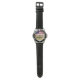 My husband loves the watch, he likes the dial, the graphics, the band, and it keeps perfect time.