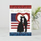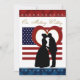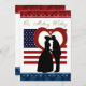 Customised patriotic American flag military wedding invitation, with heart and kissing silhouette bride and groom! Main colours are red white, blue, and golden. This invite template is ready for you to customise your wedding day details in the provided template areas. If you would like to change the font or the colours of fonts, placement of text or rearrange anything simply click on 'customise' and all these options will be available to you! Please visit our store for matching patriotic items such as reception placement cards, table number cards, response cards, postage stamps, military ornaments and wedding favours, and much more.