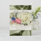 The flag of the United States of America adds a patriotic touch to this sage green and creamy off-white military wedding invitation with a custom front and inside so the bride and groom may invite friends and family to witness their wedding.