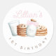 Cute milk and cookies themed birthday thank you stickers with a pink bow.