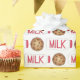 Design features an original marker illustration of a classic food pairing: milk and cookies!