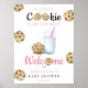 A Little Cookie Is On The Way! Milk and Cookies Baby Shower. Watercolor baby shower party. Watercolor cookies with chocolate and glass of milk with pink straw.