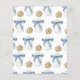 A Little Cookie Is On The Way! Watercolor baby shower party. Watercolor cookies with chocolate and bottle milk with blue bow.
