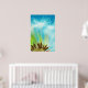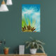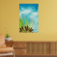 A large poster in green, blue and white for home and office decoration. Bright white on a soft cyan makes cool fealing for relaxing interior. Enlighten it with subtle to bright white diffuse lamps.