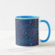 White and light blue 11 oz. combo mug with an image of a beautiful blue, purple, pink and green millefiori design. See matching espresso cup, candy jar, paper plate, square ceramic tile, square trivet and coasters. See the entire This & That Mug collection in the HOME section.