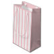 Small gift bag with millennial pink and white stripes on the front and back. Both sides are solid millennial pink. Customisable. Modern and trendy, it is the perfect classic gift bag for gift giving.