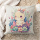 Millie Mae - Cute Bunny Sitting in Flowers Throw Pillow. Great for Kids Room and Nursery's.