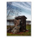 Photograph of an outhouse designed to look like an old mill with waterwheel. Maine Americana at it's best.