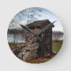 Photograph of an outhouse designed to look like an old mill with waterwheel. Maine Americana at it's best.