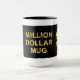 Mug with the words "MILLION DOLLAR MUG" in gold writing with gold dollar signs against a black background. Use this mug every day to inspire yourself to work relentlessly towards your dream goal.