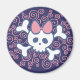 Cute girl's cartoon skull and crossbones pirate emblem, with big pink bow and squiggly line background. Sweet and saucy, t-shirts, sweats, cards, gifts.
