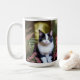 Pictured with a fern backdrop is Millie the black and white Ragdoll cat