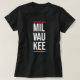 High-contrast stacked MILWAUKEE typography with red top bar and blue accent, ideal for urban pride apparel and tees.