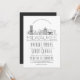 A unique wedding invitation for a marriage taking place in the beautiful city of Milwaukee, Wisconsin. This invitation features a stylised illustration of the city's unique skyline with its name underneath. This is followed by your wedding day information in a matching open lined style. On the reverse side of the invitation is a deep grey colour to complement the look and feel. All individual elements of the invite card are unlocked so feel free to change or add any details necessary by using the customisation function. You can add a photo to the reverse side and add a black and white filter to it. Also, you can experiment with the many unique thicker paper types and cuts available. Matching RSVP cards, address labels, stickers, tote bags, and more are available. Have fun being creative and making it your own!