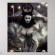 A gothic mime emerges from a haunted midnight carnival, her twisted horns, porcelain skin and striped corset glowing beneath the full moon. Surrounded by eerie masks and drifting fog, this dark fantasy print blends beauty, danger and circus mystique into a striking statement piece.