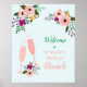 This chic and trendy design is perfect to celebrate a Bridal Shower Brunch. It features two glasses of bubbly champagne and a beautiful floral design in watercolor style. The colour palette is soft and fashionable. This modern design is ideal for a young bride with a fun personality and a discriminating taste. It will set the tone for a memorable brunch with family and friends. This welcome poster is a great way to greet your guest to the event and make them feel welcomed immediately.
