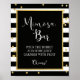Mimosa bar sign featuring black and white stripe design with gold faux foil confetti details.