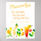Create your own fun Mimosa Bar wedding sign display- Reads 'Mimosa Bar' at the top in tilted, golden colour script. Underneath in orange lettering, it reads 'Pour the Bubbly Next Some Juice And Top With Fruit'. Reads 'Sip Sip Hooray!' underneath. Bordered at bottom with fruity cocktail drinks and citrus fruits. Use the Customise It button to change anything - wording, font styles, sizes, colours, or placement. We have MORE WEDDING SUPPLIES AND DECOR in our Zazzle.com/angela65* shop. Perfect for summer weddings, brunch bridal showers, trendy modern styles, and beach weddings. Ready to be personalised however you like. Easily customisable for any special occasion or function- bachelorette party, anniversary party, rehearsal dinner, retirement celebration, adult birthday, etc.