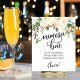 Simply elegant floral rustic bouquet design in watercolor (watercolour) green greenery, blush pink, beige, champagne, vanilla, peach, white flower roses / peony on white background and black letters. Wedding bridal shower MIMOSA BAR SIGN for that spring or summer theme. Perfect outdoor cards.