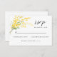 Mimosa Spring Flowers Yellow Floral Wedding RSVP. RSVP card featuring beautiful watercolor silver wattle mimosa flowers and greenery in shades of yellow and green with modern calligraphy script and yellow colour in the background. You can personalise the wording, font style, colour and size in front and back of this botanical RSVP card. Matching items available.
