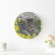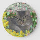 Mimosa the Tiger Cat in Mimosa Flowers Large Clock