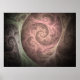 This abstract spiralling flame fractal features an intricate pattern of muted pink, cream and green in an almost organic design.