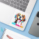 The stick looks amazing. Unfortunately, it would not stick on our suitcase as it was textured. When we found a non-textured (smooth) suitcase, the sticker stuck and looks great. The printing looked awesome.