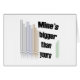 The card shows a collection of large organ pipes next to another set of smaller pipes; in between are the words "Mine's bigger than yours". Inside is blank but it can be left as it is, or your own greeting added. Your choice!