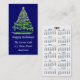 Handy little business card size calendar to hand out to friends and colleagues. Front is an arty Christmas tree from an original digital abstract design with tinsel, garland and gold and blue ornaments. Background is deep Christmas blue, but may be changed to the colour of your choice by clicking on Customise if you wish. Easily change the message and your business information. Mini calendars are always appreciated as little extras to slip into your customer's shopping bag or cards or gifts.