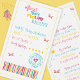 On the back is a cute little rhyme I’ve created, in a fun playful font and a cute cartoon little tooth in suspenders being carried up with little fairy wings and a fairy wand and more sparkles and twinkles to be personalised. .