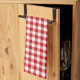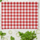 This design features a tiny gingham check plaid pattern in red and white. Ideal for a country themed kitchen!