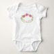 Mini Goddess baby garment with wreath of flowers and whimsical gold lettering. A unique baby shower gift celebrating the magic of girlhood. Choose from several colours. Pink for sweet. Black for bold.