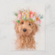 Mini Goldendoodle Dog Flower Crown Portrait Postcard