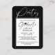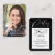 Mini Graduate Party Script Photo White Cap Black Invitation Enclosure Cards. Sized at 3.5x2.5 inches, these small, custom colour graduation photo invitation enclosure cards can be inserted with graduation announcements or used to hand out to friends and family (envelopes are not included or offered). The design features one picture on the front and fancy handwritten script typography in your choice of text, graphic titles and background colours (shown in white on black--note the graduation cap colours cannot be changed without contacting the designer). Make colour changes in EDIT to school colours or to coordinate with your photos or party them colours. Sold in custom quantity lots ideal when smaller quantities are desired. ASSISTANCE:  For help with design modification or personalisation, colour change, transferring the design to another product or if you would like coordinating items, contact the designer BEFORE ORDERING via the Zazzle Chat MESSAGE tab or email makeitaboutyoustore@gmail.com.