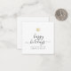 These Mini sized holiday cards are modern, elegant, and beautiful little custom cards with a trendy typography design reading Happy Holidays in a stylish calligraphy script under a printed gold snowflake with your personal family name and message on the back (please delete template text if no preprinted note is needed). This is the black and white version.