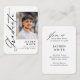 Modern brush script mini size graduation announcement and invitation with photos in black and white, simple and unique. Custom it with your own photos and grad party information.