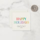 These Mini sized holiday cards are modern little custom cards with trendy typography reading HAPPY HOLIDAYS in a stylish rainbow design with your personal family name and message on the back (please delete template text if no preprinted note is needed).