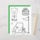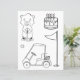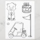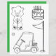 The delightful colouring page design features an adorable gopher next to a birthday cake, golf cart, golf pin, and ball. This coordinating design pairs perfectly with the invitation set.