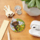 Mini Red Dachshund on the hunt in her colourful yard adorns this cute and functional keychain.