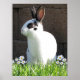 Mini rex in our backyard with daisies looking around in the morning sun. Photo work by Carolyn Hidalgo