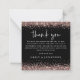 A charming MINI SIZE 2.5” square. PLEASE NOTE if you are in the US, the 2.5” square is smaller than the minimum US postage requirement so please choose size 5.25” x 5.25” square if you are intending to mail them (Note too that square cards may cost more to mail than rectangular ones). Rose Gold Glitter Photo Engagement Thank You. Faux rose gold glitter is at the top and bottom edges and Thank You is in a set handwriting style script on a black background.Easily personalise the rest of the text. On the back replace the sample image with a favourite one from your party of square orientation.