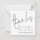 A charming MINI SIZE 2.5" x 2.5" square for your thank you notes. PLEASE NOTE if you are in the US, the 2.5” square is smaller than the minimum US postage requirement so please choose size 5.25” x 5.25” square if you are intending to mail them (Note too that square cards may cost more to mail than rectangular ones). Alternative there are other card types for this design available in this collection. Script New Mr Mrs Wedding Any Colour Thanks. Thanks and Mr & Mrs are set in an elegant handwriting style script on the front and the rest of the text on each side you can easily personalise with your names, and your thank you message for your guests. Shown in black and white, however can be changed to any colour of your choice via the customise further option.